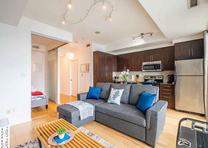 Cette villa de 1 chambres est à moins de 800 mètres d'Orchestre symphonique de Toronto et assez proche d'Aquarium Ripley de Toronto. Les clients apprécieront la proximité des attractions éducatives comme l'Université de l'École d'art et de design de l'Ontario, qui se trouve à 1 km. Cette villa 1Br Luxury Condo - Downtown Toronto se situe dans le voisinage de "Entertainment" à Toronto, à 25 minutes de marche d'attractions naturelles comme le Parc des Îles de Toronto.